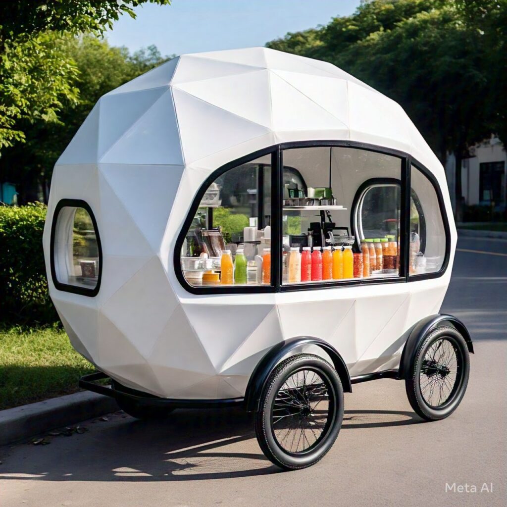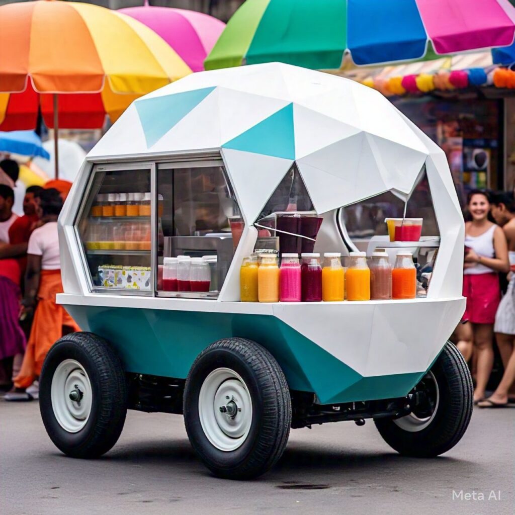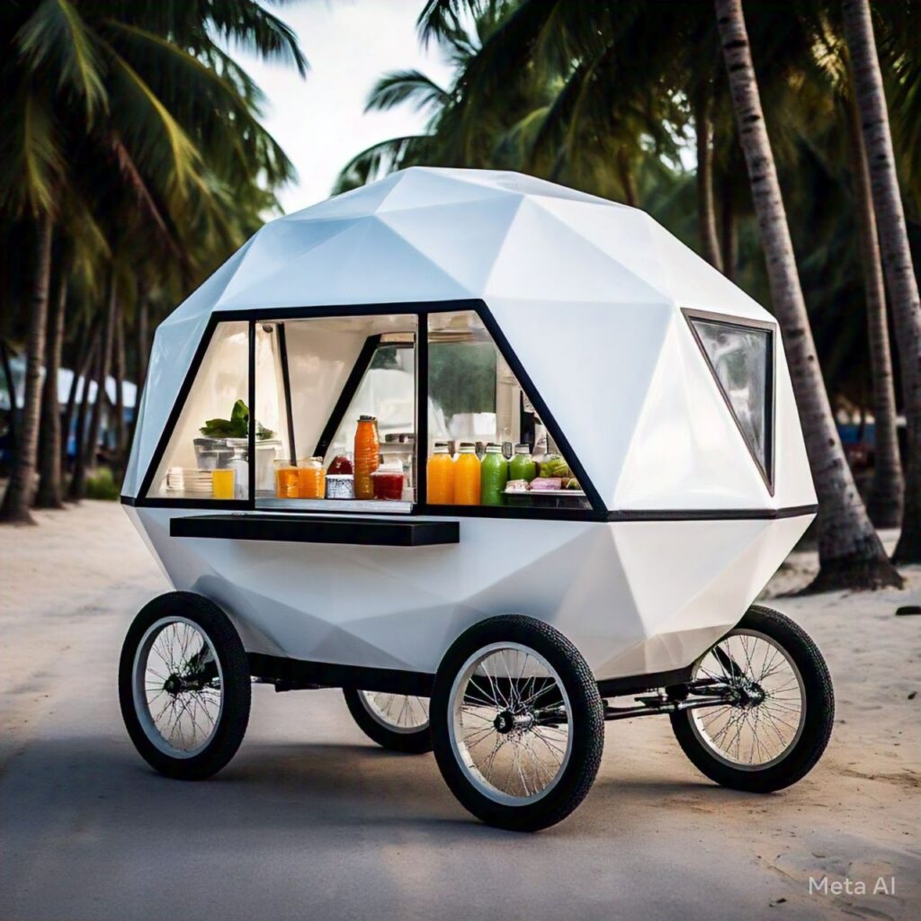 This low cost and modern food cart that is movable it’s made with 4 wheeler for small-scale street food makers