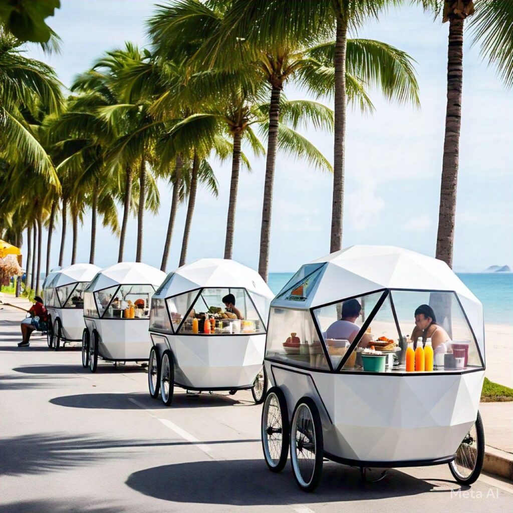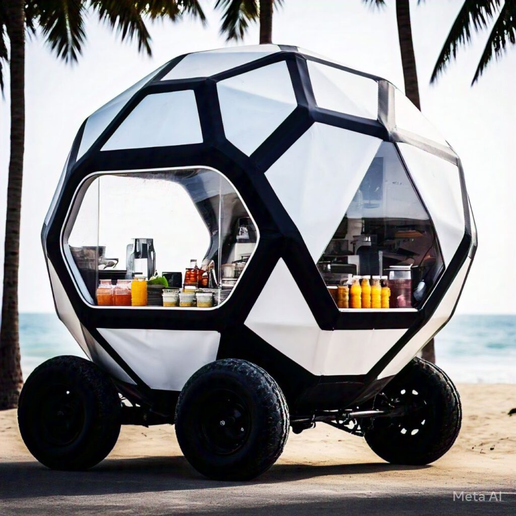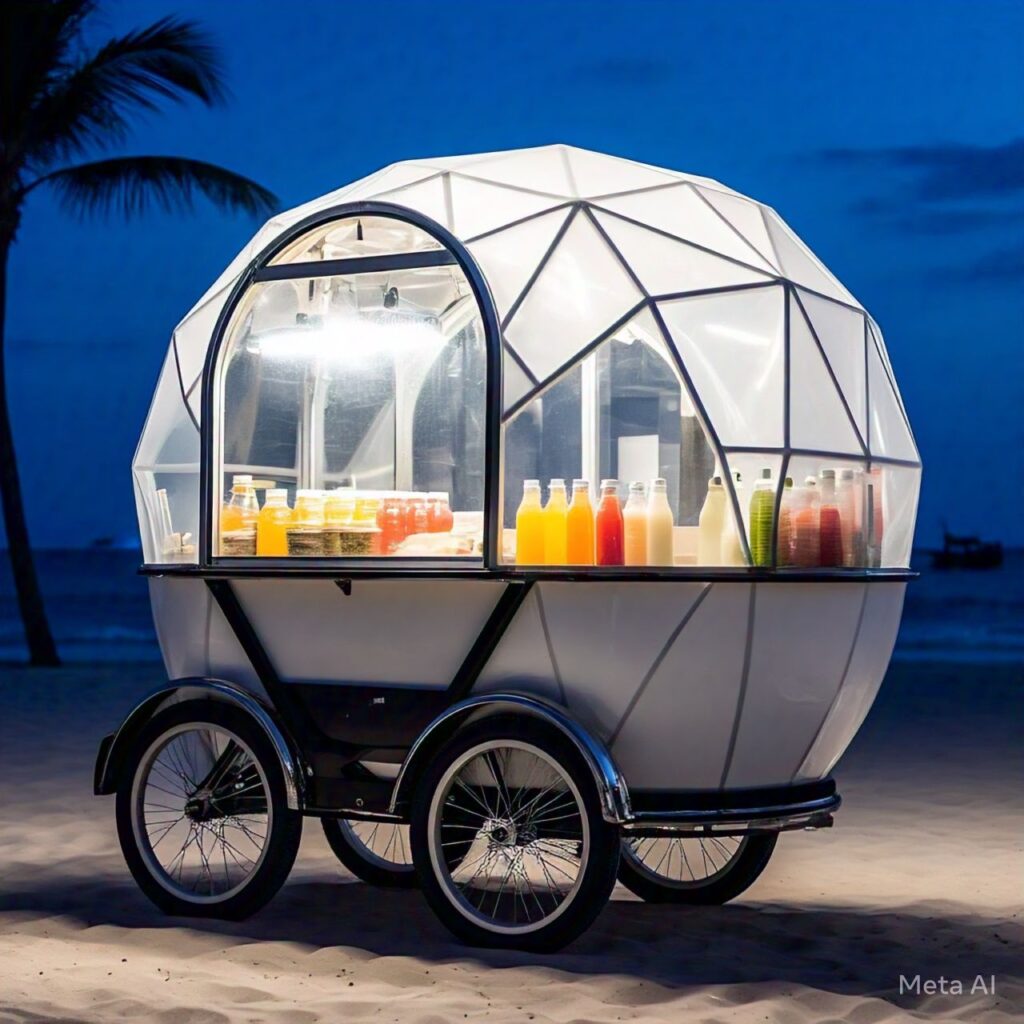 This low cost and modern food cart that is movable it’s made with 4 wheeler for small-scale street food makers